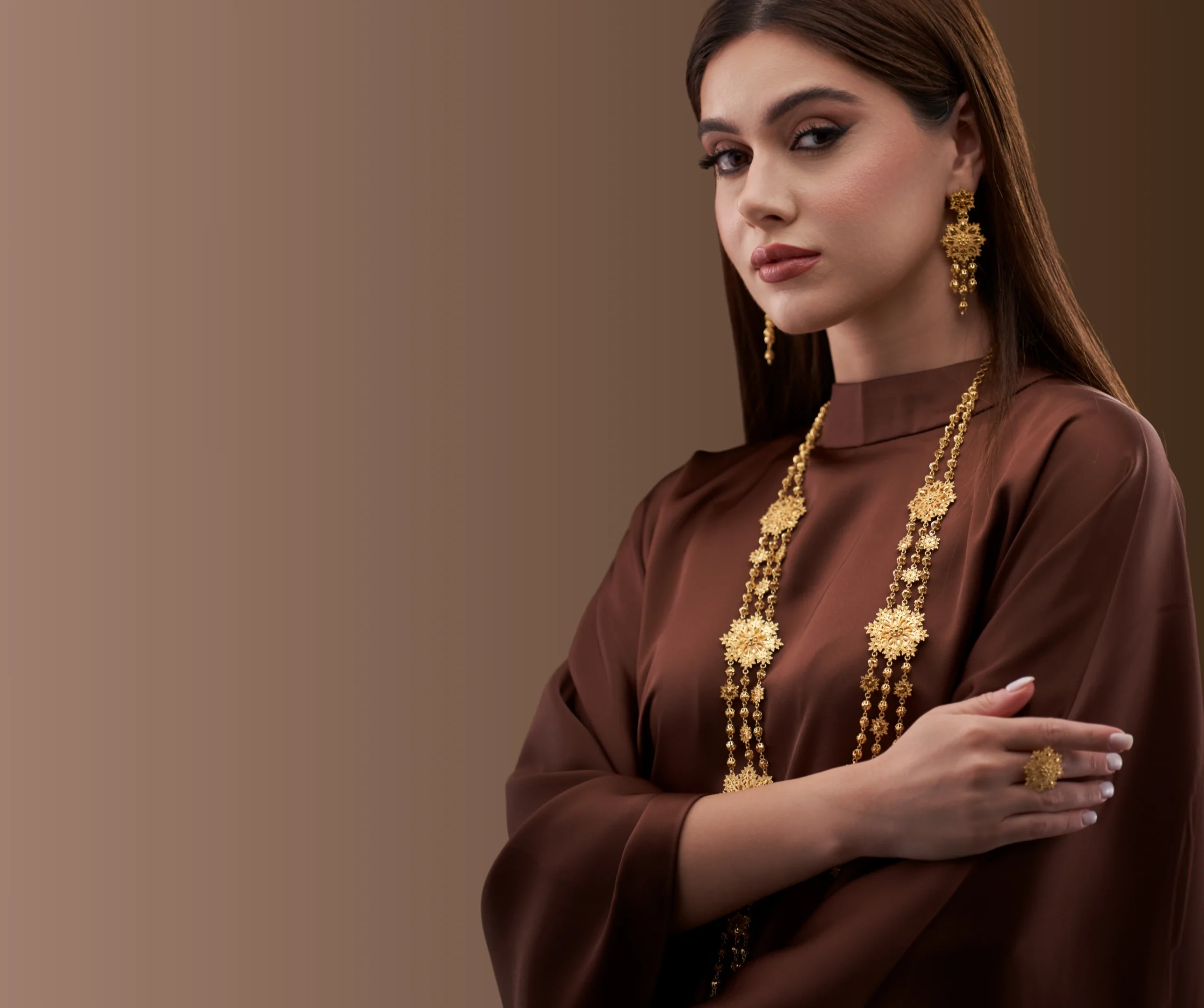 They offer a wide range of luxury gold jewelry, including gold sets, chokers, body & belly chains, bracelets, rings, earrings, and pendants.